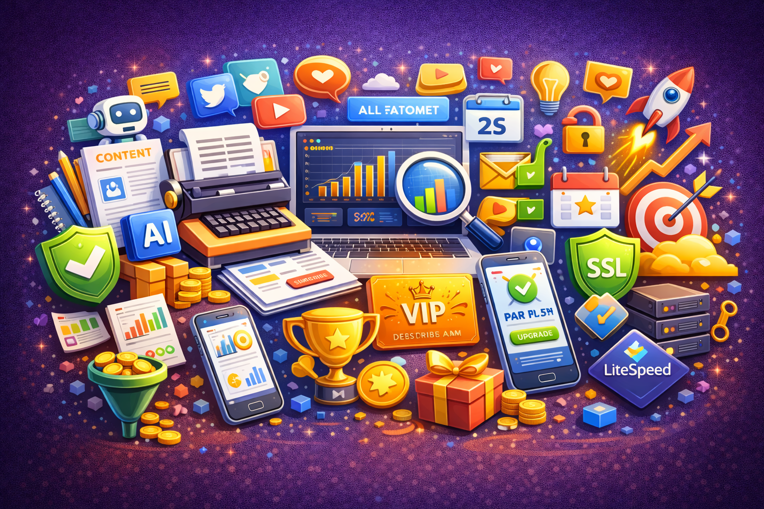 Social Media, Website, Software, SEO & Growth Tools – tout ce dont vous avez besoin pour votre business.